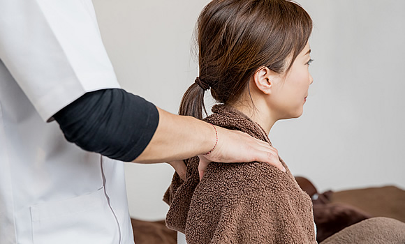 首から肩にかけての筋肉が姿勢を保つために緊張して血行が悪くなって、重く感じるのが肩こりです。施術することで改善できます。